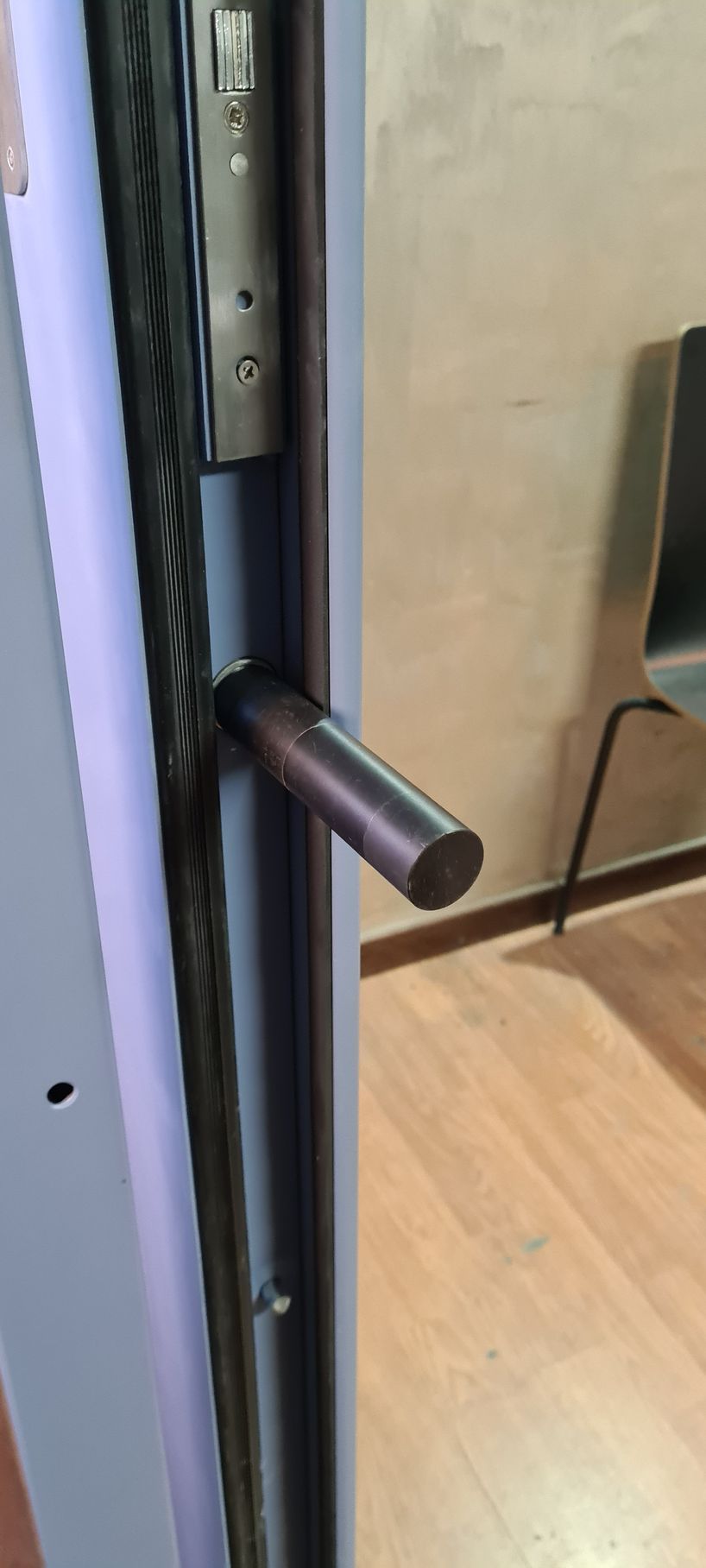 La porta è equipaggiata con una serratura di sicurezza che include rostri laterali e pistoni pneumatici automatici, rendendola molto difficile da forzare.